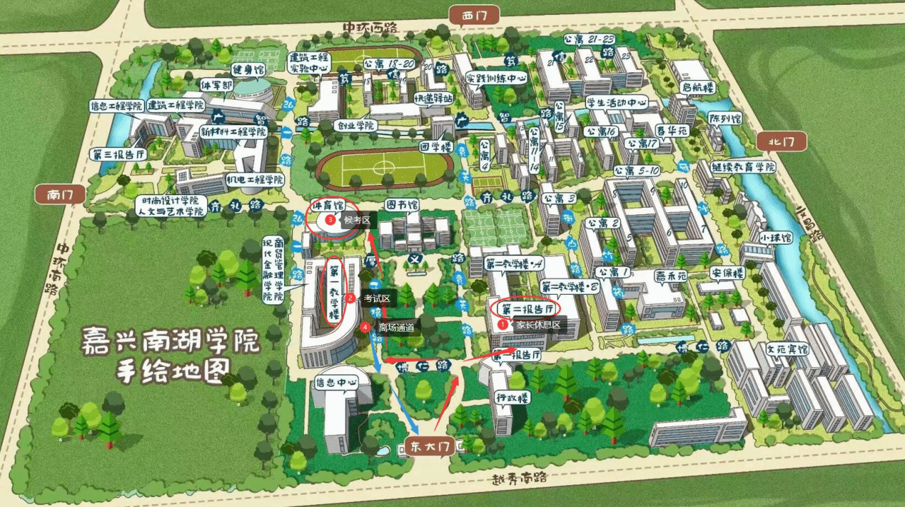 (三)由于学校位于市区,学校东门口无停车位,为避免拥堵,建议考生、家长尽量选择绿色出行;自驾的考生和家长,入校后统一听从学校安保人员和志愿者指挥。